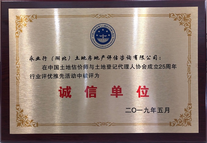 中国土地估价师与土地登记代理人协会诚信单位